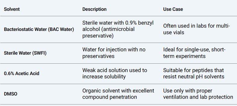 Common Solvents Used in Laboratory Reconstitution
